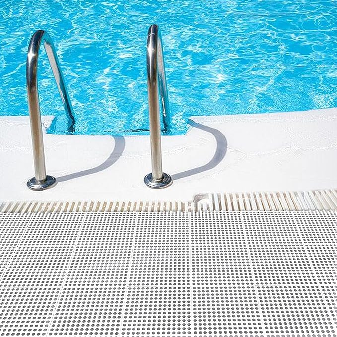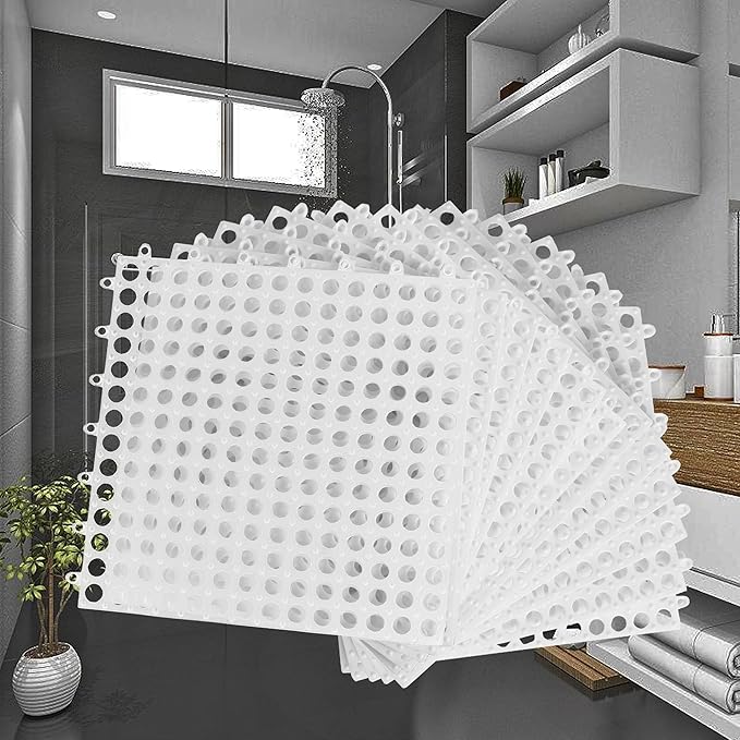 • 【White Floor Tiles with Drainage Holes】 Includes 12 PCS 12”x12” interlocking drainage mats, waterproof and non-slip, perfect flooring tiles for indoor pool, shower, bathroom, laundry room, hot tub and locker room