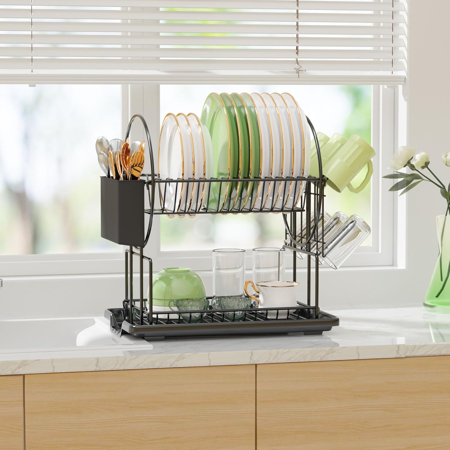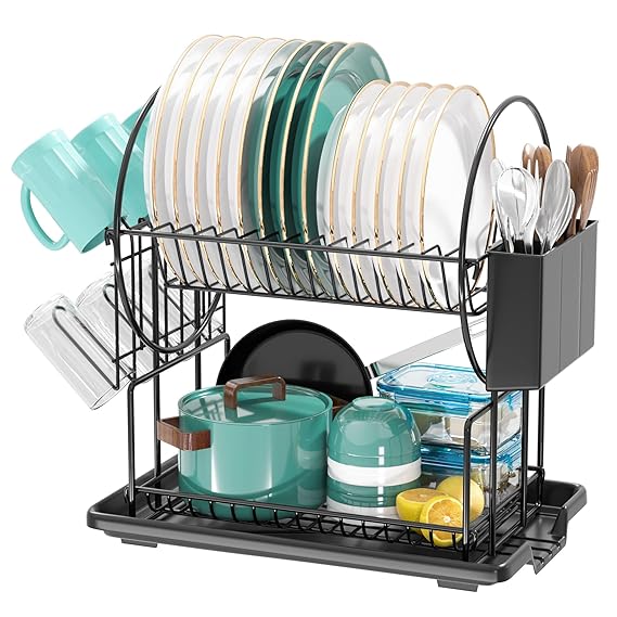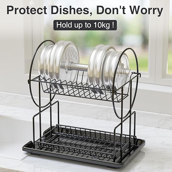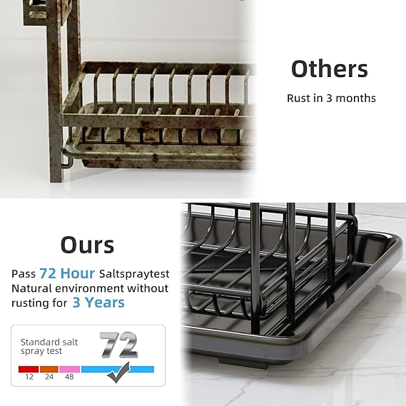 • [No Rust and No Shaking]The black dish drainer rack is made of high-quality metal and has an anti-rust coating on the surface. Not only makes the dish rack stronger, but also prevents the black dish drainer rack from getting rusty, greatly improving the durability of the black dish drainer rack. Each link part of the black dish drainer rack is carefully crafted to make the whole black dish drainer rack compact and not shaken.