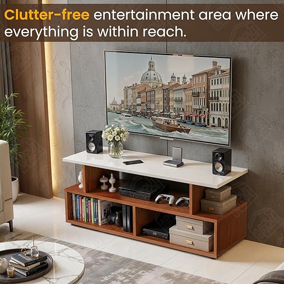 • TV UNIT for LIVING ROOM: Furnish your living room with ABOUT SPACE modern TV console that ensures stability and durability which will last you a lifetime. Its slim and elegant design will surely add a modern vibe