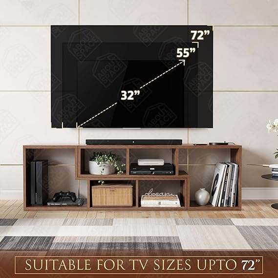 ABOUT SPACE Wooden TV Stand - TV Entertainment Unit and Shelf Storage for Set Top Box,Home Theatre,Books for Living Room,2 L Shaped TV Unit for 32 to 72 inch,Adjustable Table - Walnut Brown