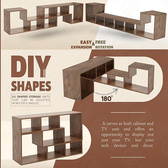 • product that works according to your requirement and space. It comes with 2 L-shaped storage units that can be adjusted in multiple angles as well as for a Corner. It serves as both cabinet and TV unit and offers an opportunity to display not just your TV, but your tech devices and decor. The dimensions are L 140 x B 30 x H 43 cm.