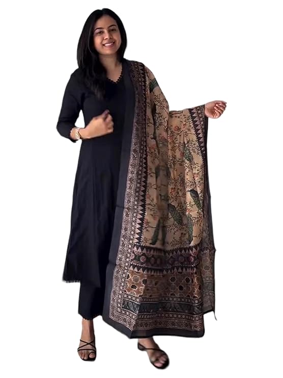 • Complete 3-Piece Ensemble: This readymade suit includes a long kurta, matching pant, and a beautifully detailed printed dupatta for a coordinated appearance.
