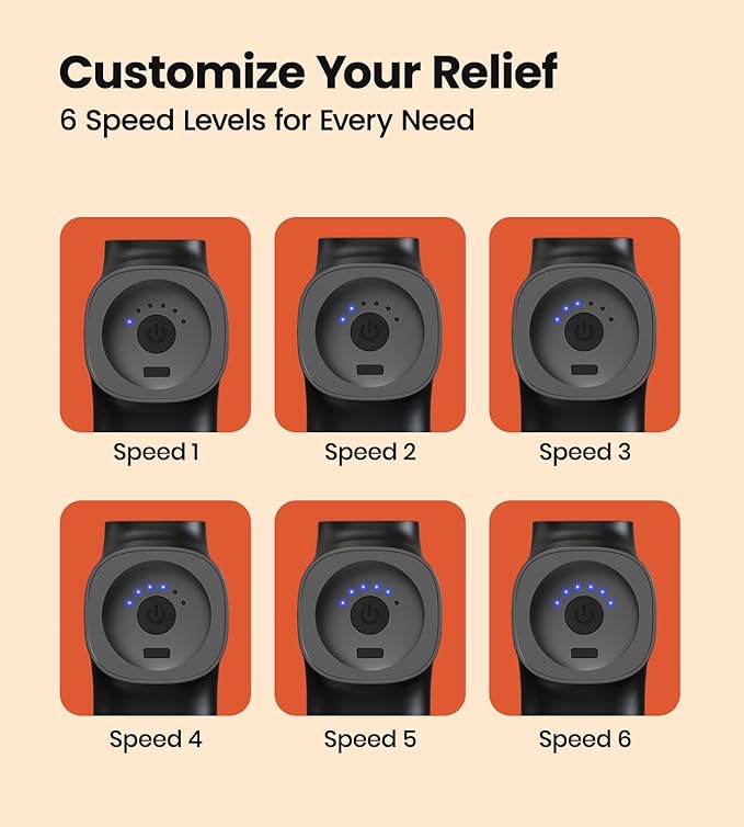 • PERSONALIZED MASSAGE EXPERIENCE: Choose from 6 speed levels and 2 smart modes to get the exact intensity and relief your body needs.