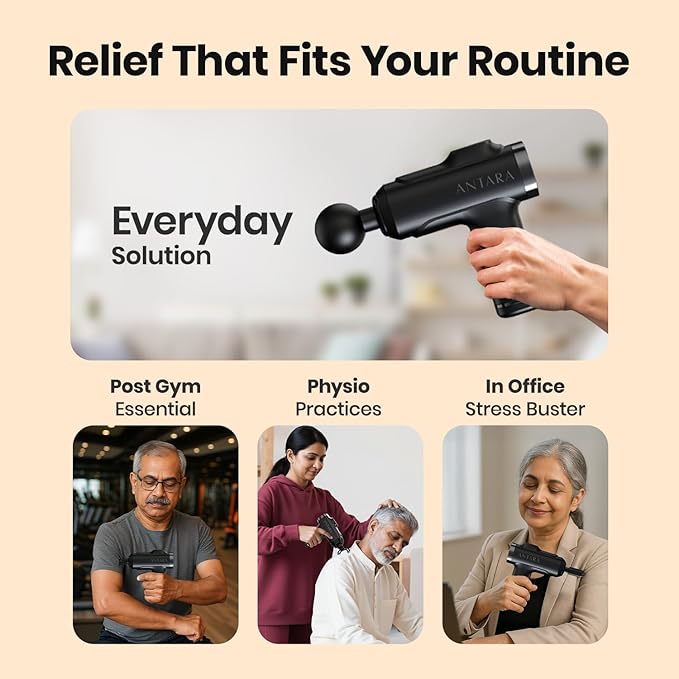 Antara AGEasy (Max Group) Relief Compact Massage Gun | 8 Speed Levels, 4 Massage Heads | USB Type-C Rechargeable Handheld Massager | Full Body Pain Relief Muscle Massage Machine for Men & Women (Black)