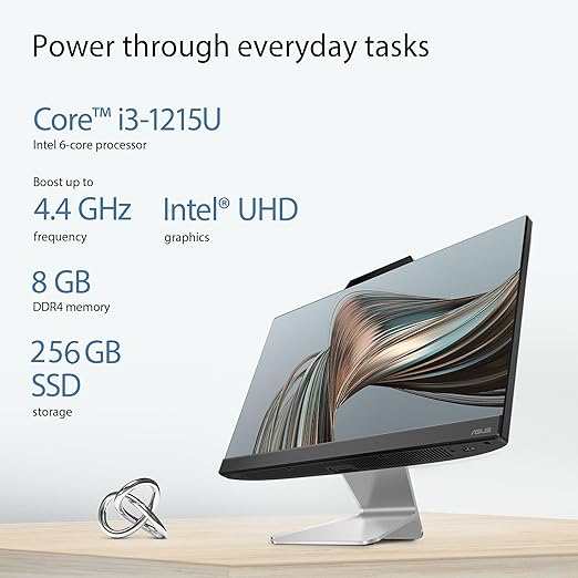 ASUS AIO A3202,21.45 12th Gen, Intel Core i3-1215U, All-in-One PC (FHD/8GB/256GB/Windows 11/MS Office 365 Basic (1Year)*/Office 2024/Black/4.84 Kg), with Wireless Keyboard Mouse, A3202WBA-BPB010WS