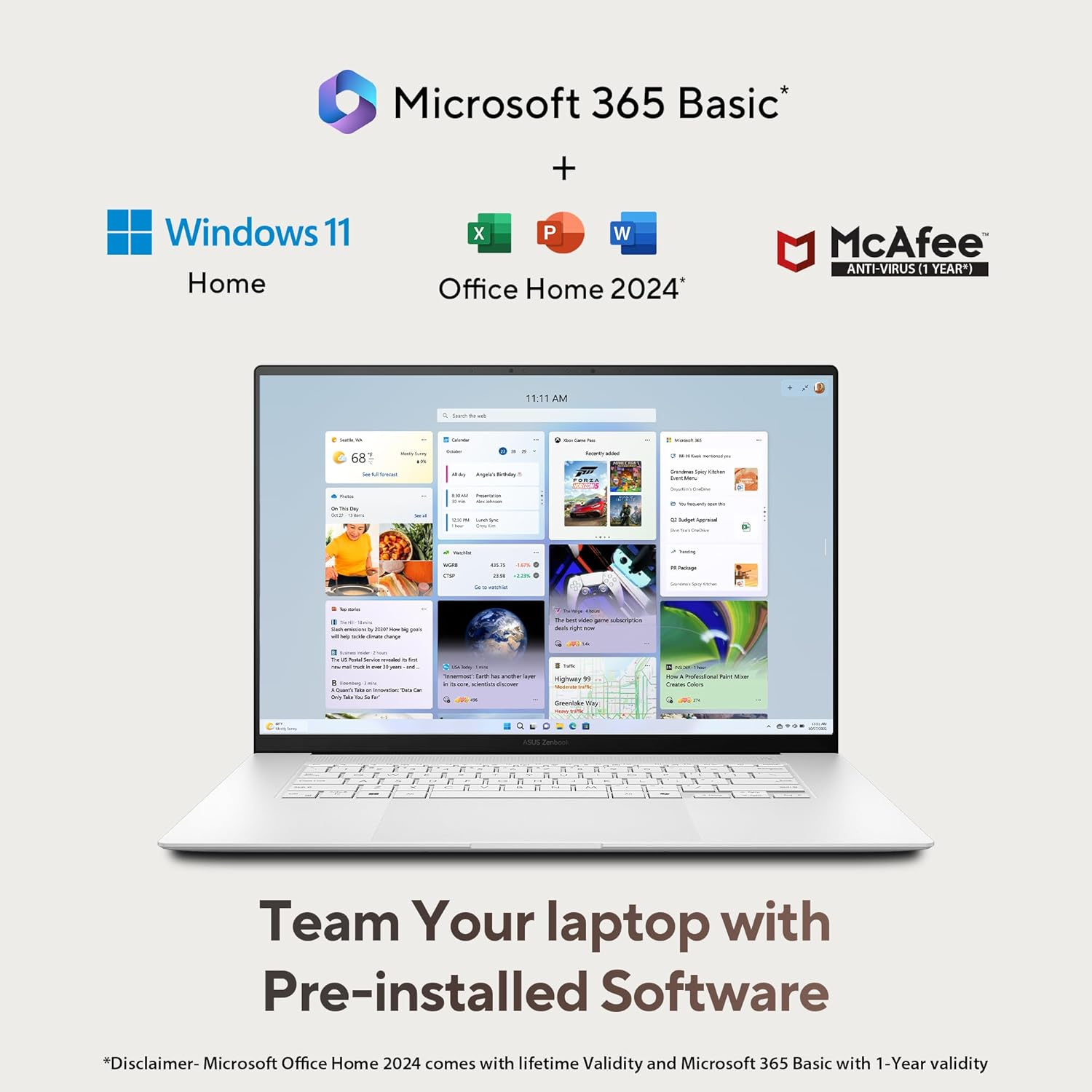 • 【Software : Microsoft 365 Basic with 100GB Cloud Storage for 1 Year + Office Home 2024 with lifetime validity | Operating System : Windows 11 Home】