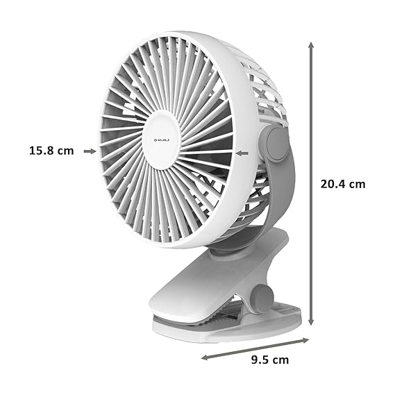 Bajaj Pygmy Mini Fan 110MM | USB Charging | Multi-Clip Function | Rechargeable | 4-Hr Back-up | Silent Operation | Longer Battery Life | Energy Efficient | Portable【White】