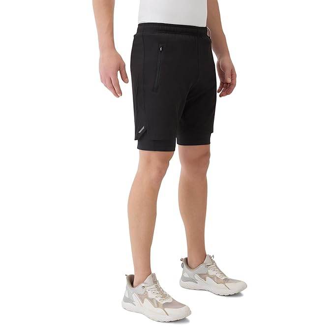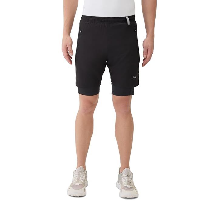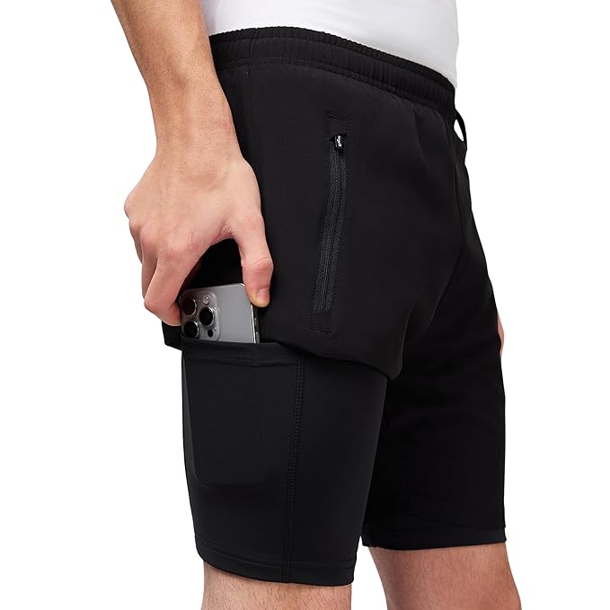 berge Men 2-in-1 Running Shorts – Inner Compression Tights with Phone Pocket & Outer Quick-Dry Polyester Shorts | Zipper Pockets, Elastic Waistband, Workout Activewear | Gym, Workouts, Jogging.