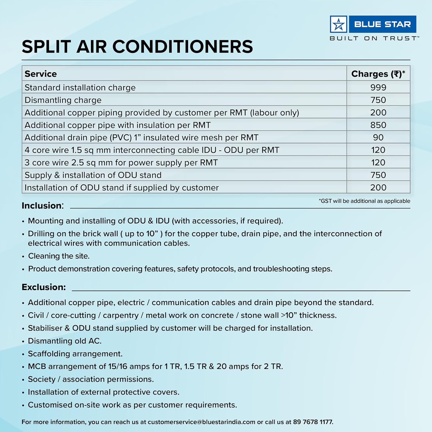 • 5-in-1 Convertible Cooling: Unique 5-in-1 cooling mode to run your AC at 5 different capacities as per the desired comfort. It comes in combination of 2 buttons in the remote. Blue Star AC's condenser coil, evaporator coil, and connecting tubes are made of 100% copper, thereby ensuring reliable cooling performance and enhanced durability.