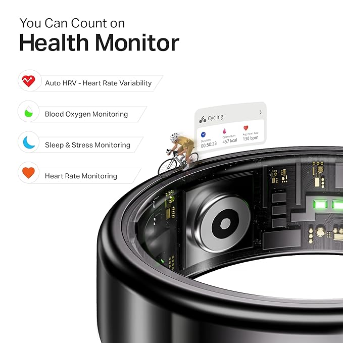 • Auto Health Monitoring: Powered with next-gen precision sensors, SmartRing Active Plus automatically tracks fitness vitals like Heart Rate Variations (HRV), Heart Rate, SpO2, Stress, & Sleep—extremely intuitively. It is known for accurate health monitoring, so you stay aware of your vitals, always.