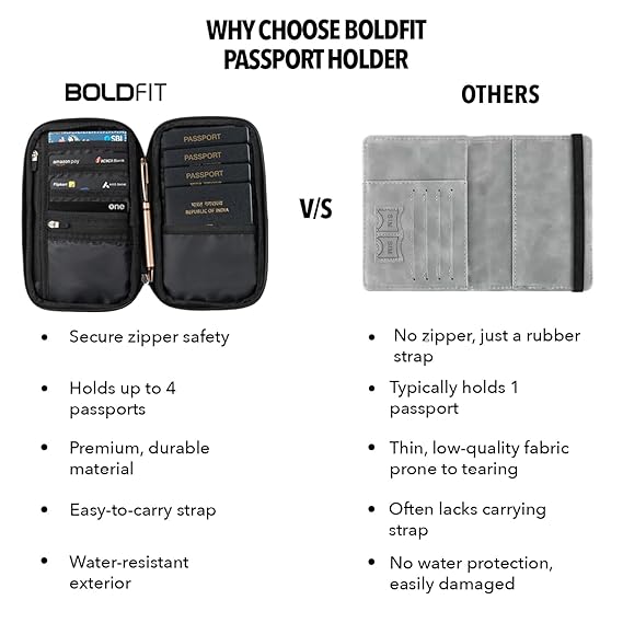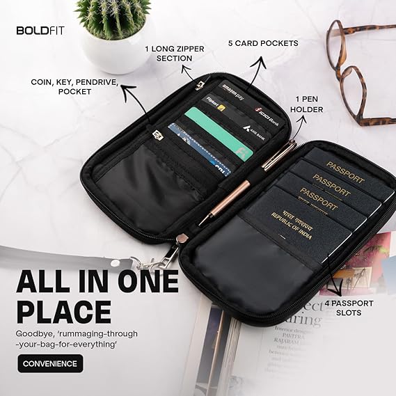 Boldfit Polyester Passport Cover for Men Card Holder for Travel Accessories Passport Holder for Women Passport Holder Cards Passport Organizer Wallet Essentials - Black