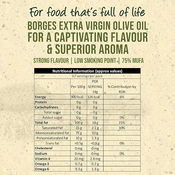 • THE OLIVE EXPERT: With over 125+ years of expertise and a global presence, Borges ensures each bottle delivers the best quality of Mediterranean Olive Oil, cherished worldwide for its high-quality products & authenticity.