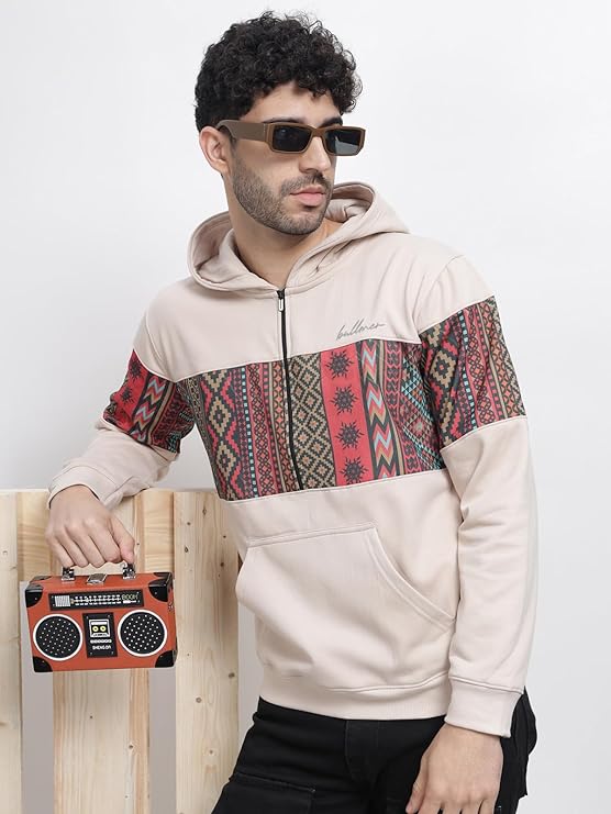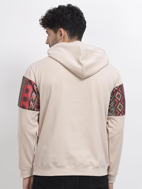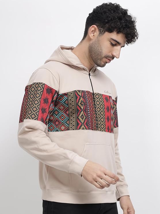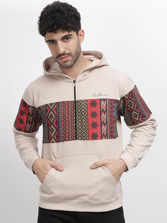 BULLMER Grey Melange Trendy Colourblock Fleece Hoodie Sweatshirt for Men