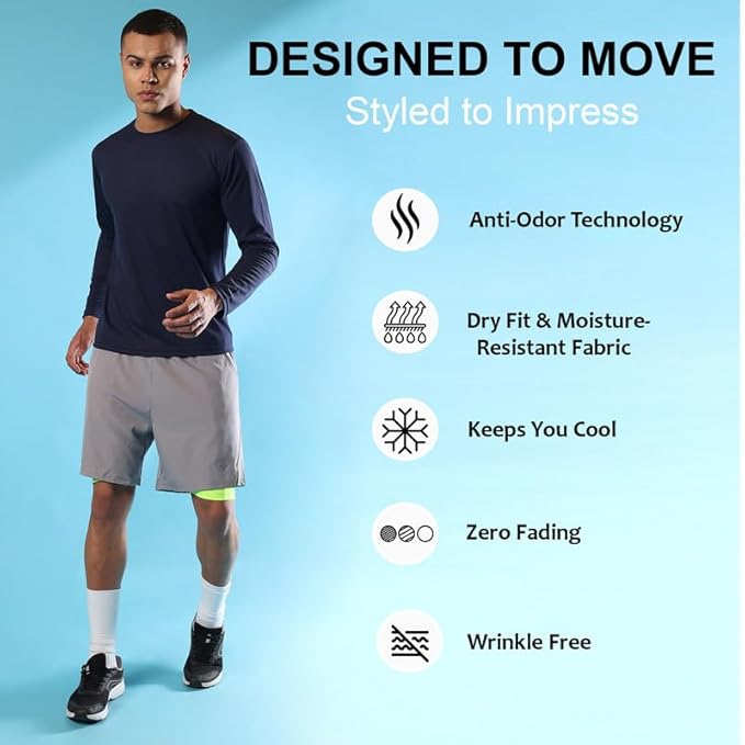 CHKOKKO Mens Polyester Regular Fit Sports Gym Full Sleeves T-Shirt
