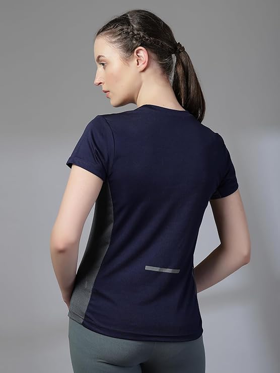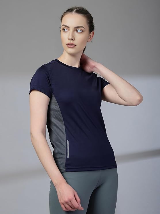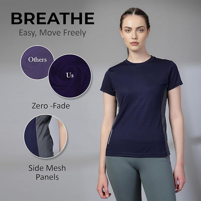 CHKOKKO Women Polyester Dry Fit Solid Quick Dry Sports Half Sleeve Regular Fit Active Wear Gym Tshirt Round Crew Neck Breathable Side Mesh Panels for Running Workouts and Fitness
