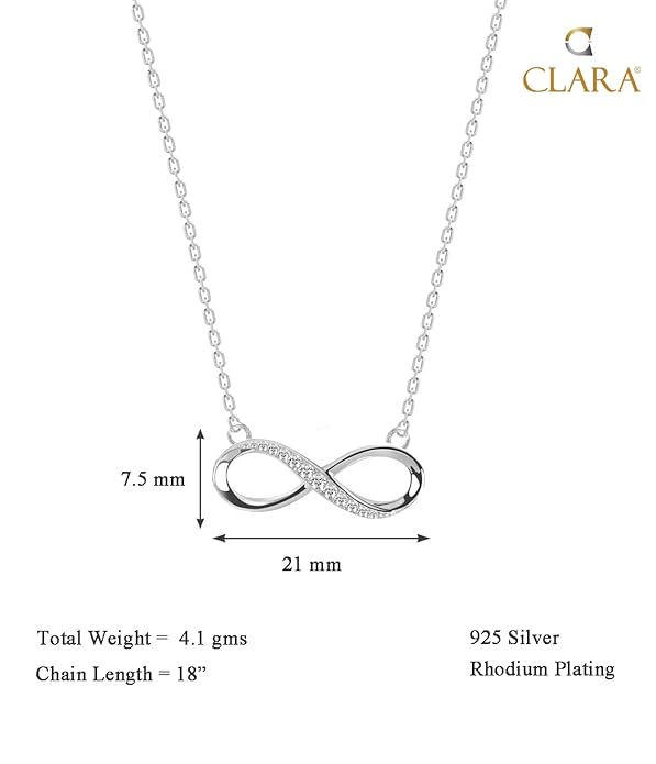 Clara 925 Sterling Silver Infinity Pendant Chain Necklace | Rhodium Plated, Swiss Zirconia |Gift for Women and Girls