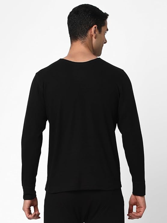 Cotstyle Black Cotton, Viscose and Polyester Super Combed Cotton Rich Fabric Men Thermal Top Innerwear