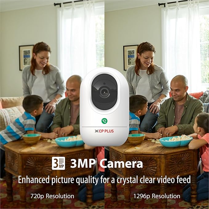 CP PLUS 3 MP Full HD Wi-Fi PT Security Video Camera | 360°View with Motion Detection | Night Vision | Two Way Talk | Supports Alexa & OK Google | 15 Mtr, White - CP-E34A