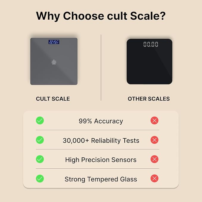 • DURABLE AND RELIABLE: With a max load capacity of 180kg and a Sturdy tempered glass platform, this scale offers outstanding durability, a scratch-resistant, skin-friendly base that prevents slipping, and an easy-to-clean surface.