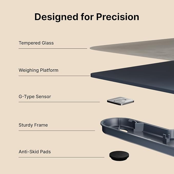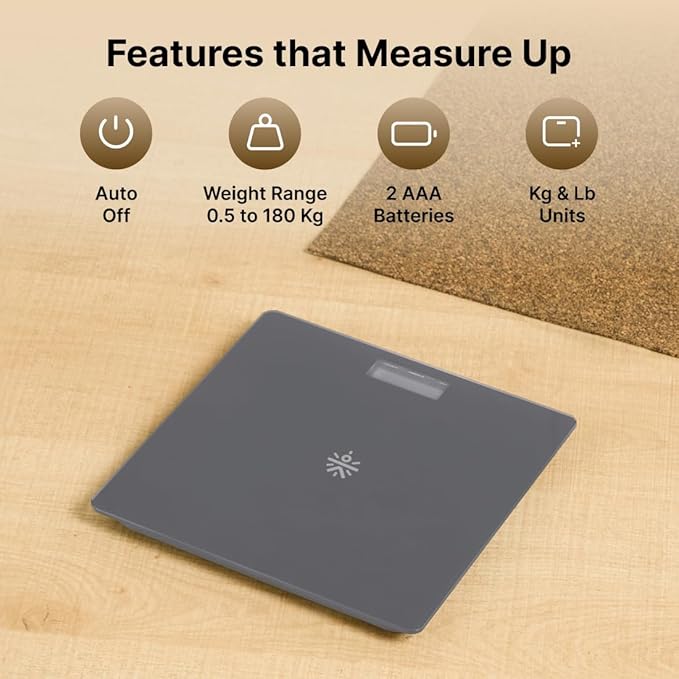 • STYLISH, USER-FRIENDLY DESIGN: Featuring a sleek, modern design, this scale includes a large, easy-to-read LCD display with automatic On/Off functionality and low battery indicators.