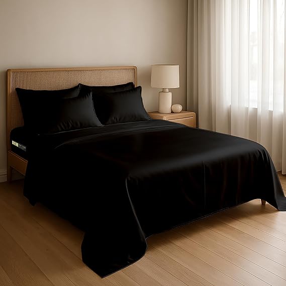 Day Care® Premium Satin Bedsheet Double Bed with Pillow Covers | Romantic Night 400TC Satin Bedsheet | Gift for Women & Couples Home Furnishing | Date Night Collection - 90x100 Inch Midnight Black