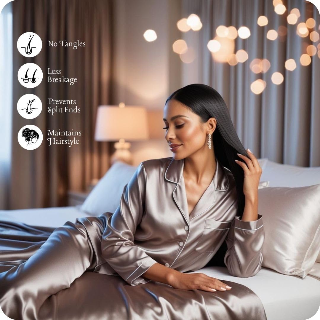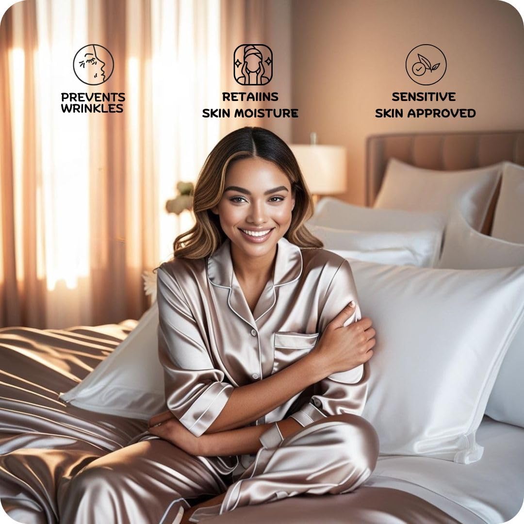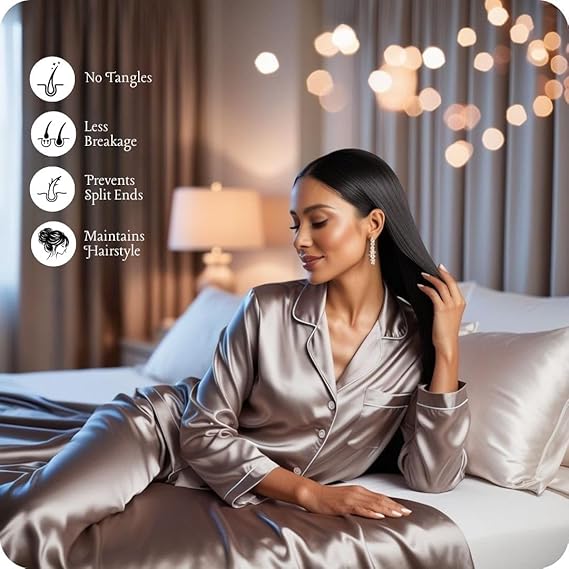 • Hypoallergenic & Skin-Friendly: Crafted with hypoallergenic fabric, this satin set is gentle on sensitive skin, offering a smooth, irritation-free sleep that ensures comfort and relaxation throughout the night.