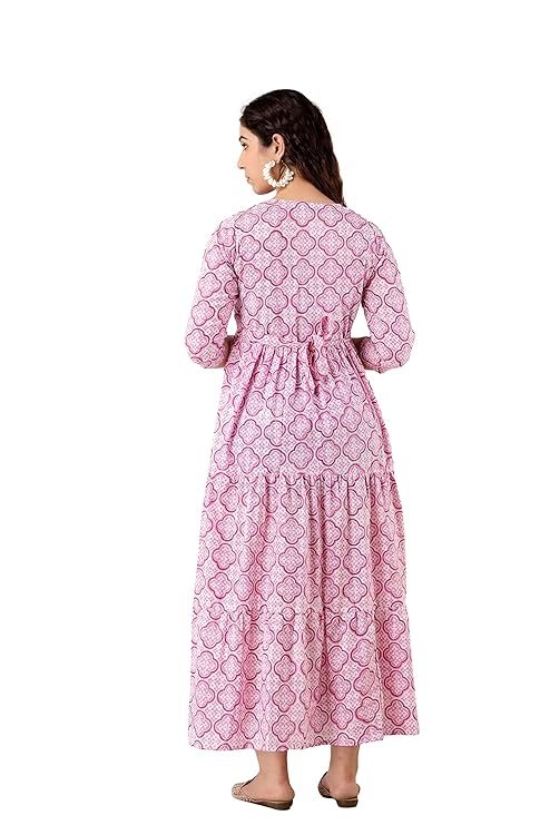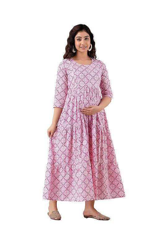 Devek Rayon Midi Maternity Dress Feeding Dress Pregnancy Dress A Line Western Dress with Zippers