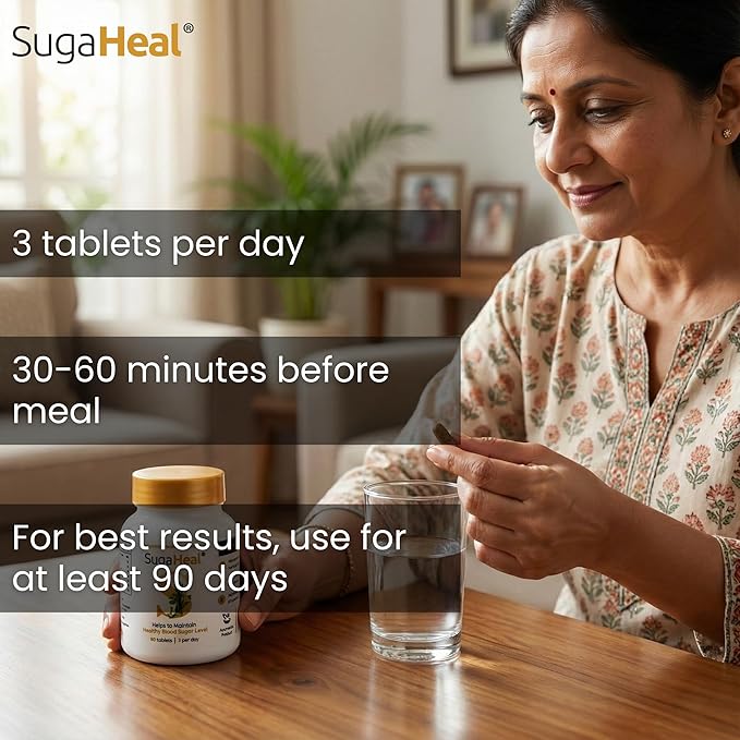• HELPS MAINTAIN HEALTHY HbA1c LEVELS - SugaHeal has proven to maintain healthy Glycated Haemoglobin levels. Glycated Haemoglobin is the measure of amount of free unused glucose in the body, if the levels are maintained in the healthy range for Diabetics, the chances of complications arising due to diabetes will be reduced significantly.