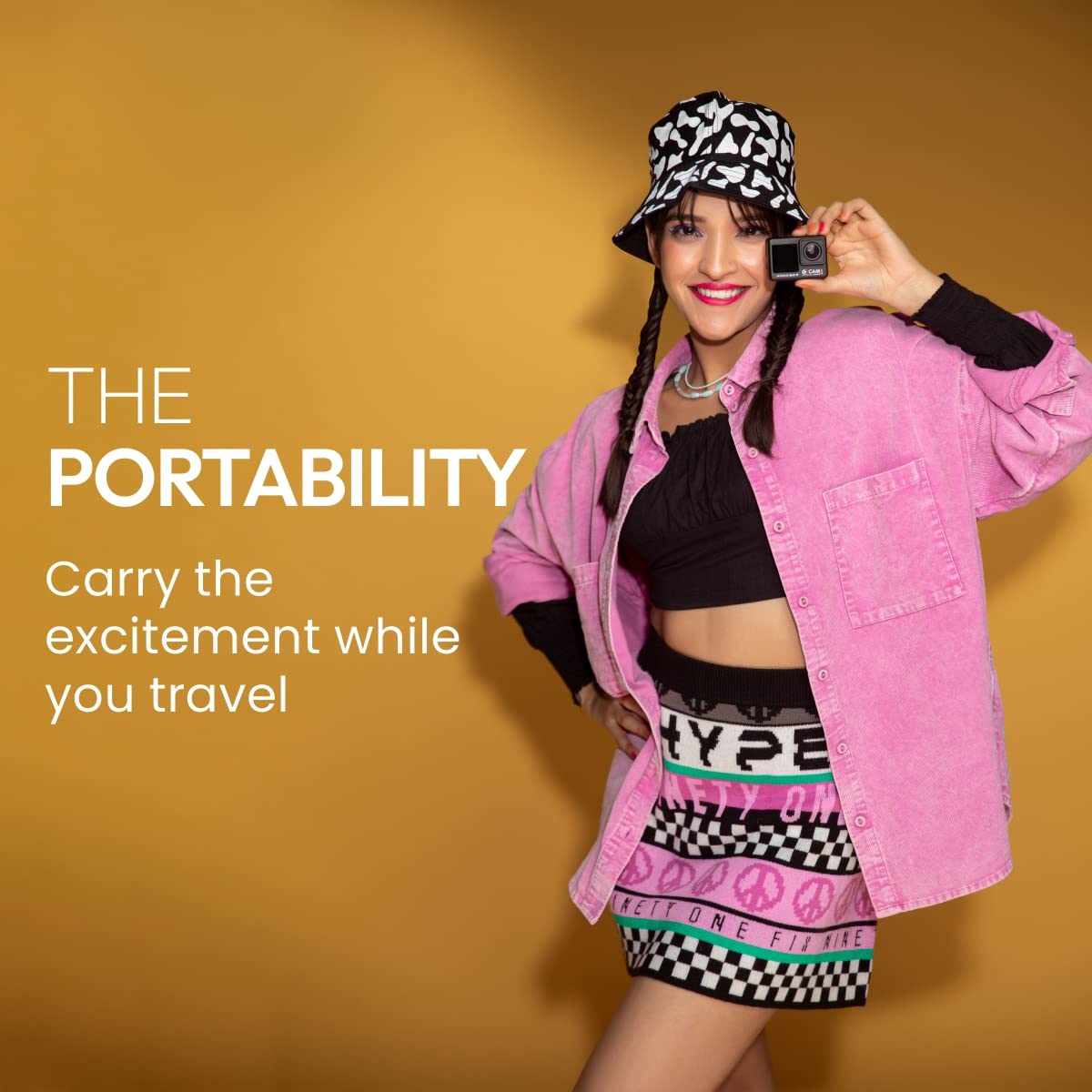 • Digitek GoCAM DAC-101 has features you'll love exploring and Native 5K 30FPS crystal clear videos that will inspire the advanced photographer in you! Comes with dual Touch screens feature. You can capture selfies in any extreme environment with an intuitive 2″ LCD at back and a 1.3″ at front.
