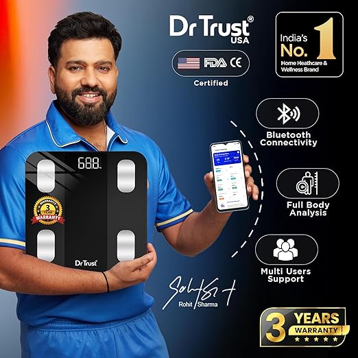 • DETAILED TRACKING WITH DR TRUST 360 APP: Eliminate paper trails! This digital body fat percentage machine seamlessly connects with the Dr Trust 360 app via Bluetooth 4.0, offering comprehensive body analysis and unlimited memory storage. The Dr Trust 360 app provides detailed charts and saves historical data, allowing you to track changes in your body composition over days, weeks, months, or even years. Moreover, our fat analysis machine provides precise analysis of health and body weight for e