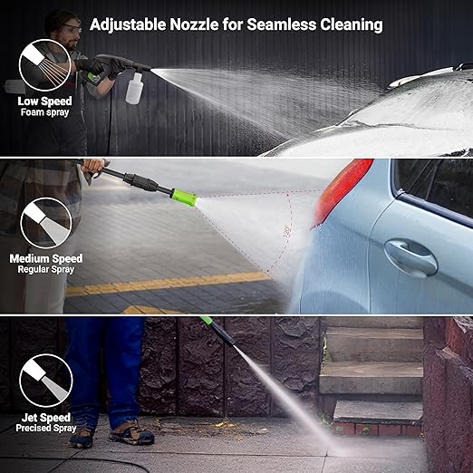 • Versatile Usage: Our pressure washers are perfect for cleaning vehicles, outdoor equipment, patio furniture, garden tools, fences, stone and brick walls, swimming pools, and more, making the Pressure Washer an indispensable tool for your cleaning needs.