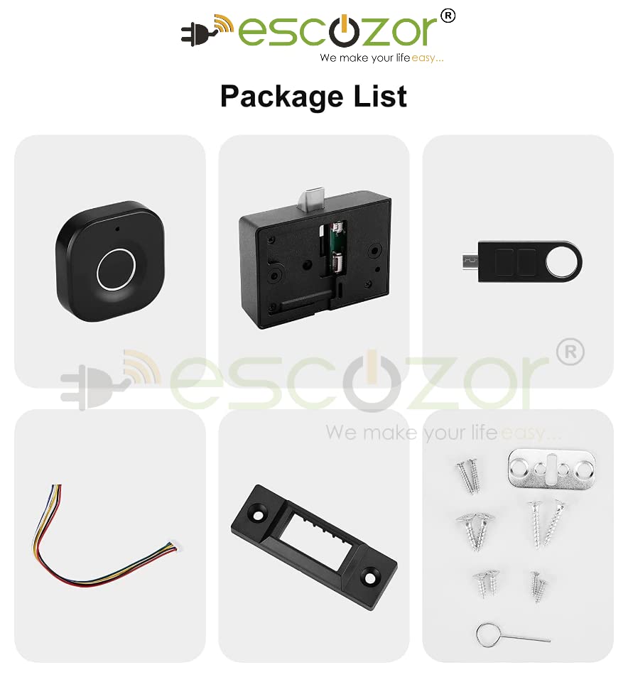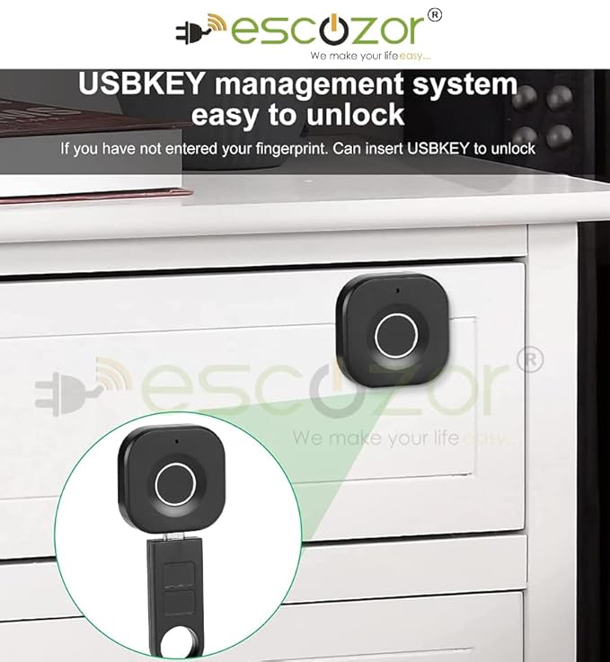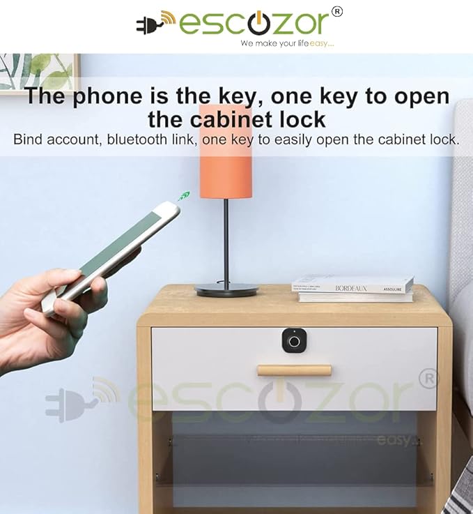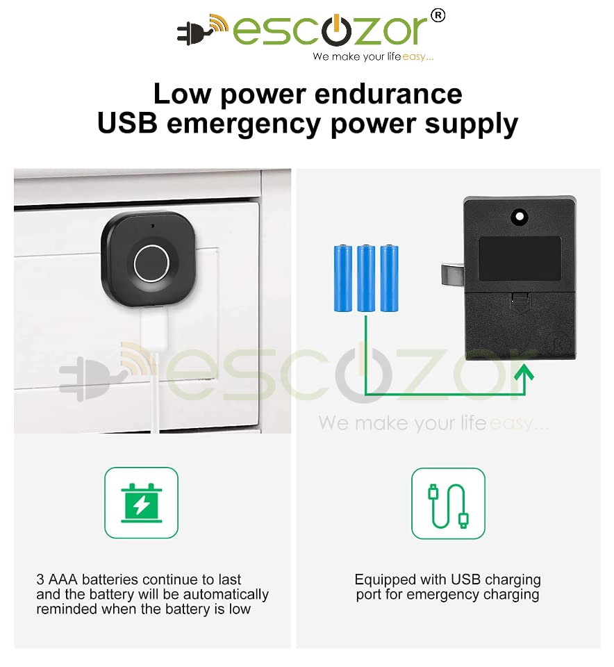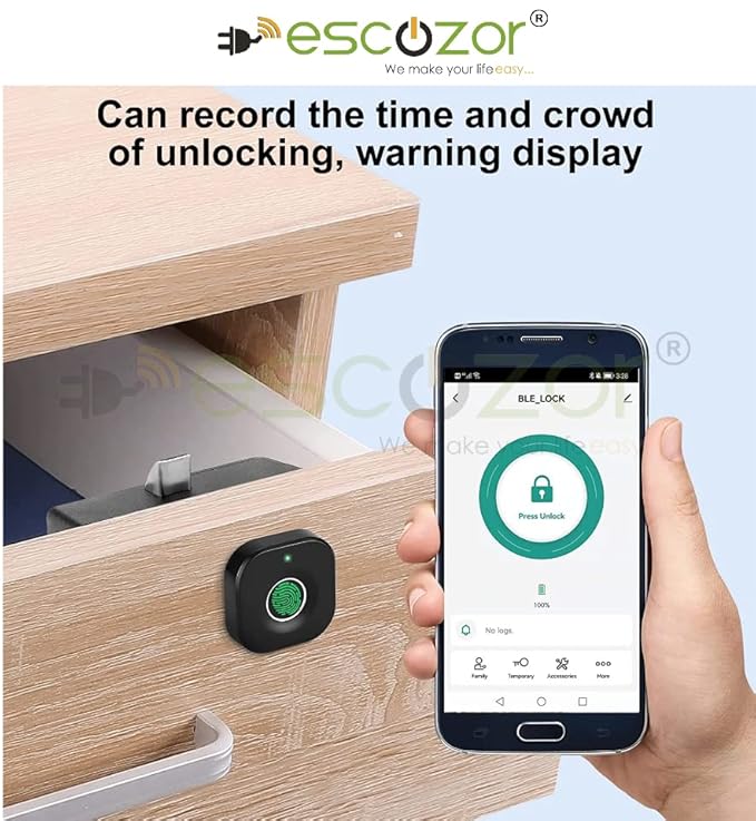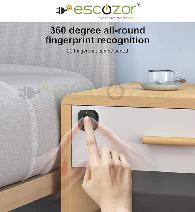 Escozor® Smart Furniture Digital Keyless Lock for Home (Fingerprint Lock with Mobile App Control), Polished Finish (Black)