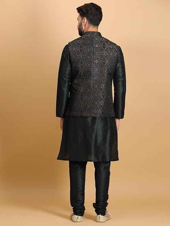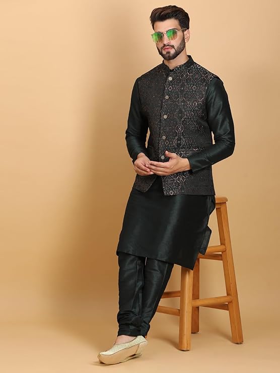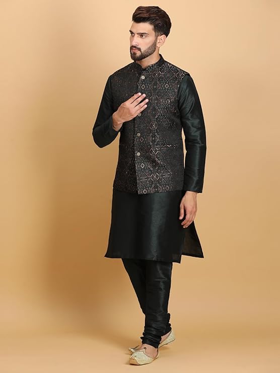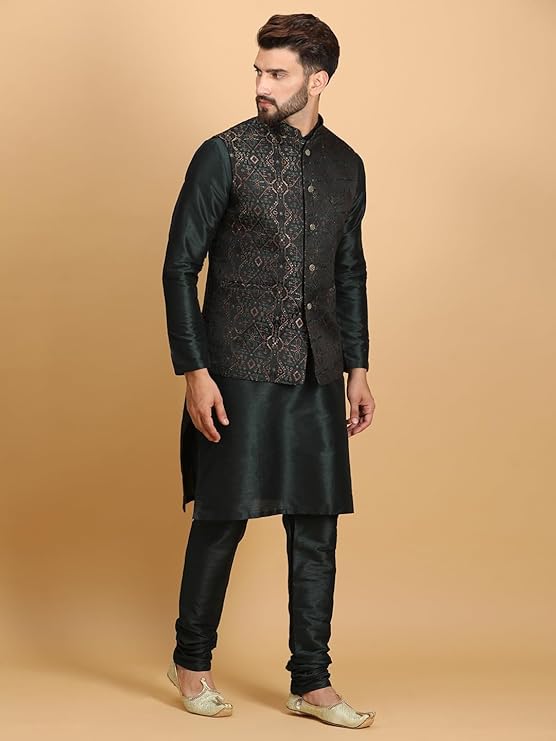 • Material: Silk Blend Kurta Set Jacquard Nehru Jacket