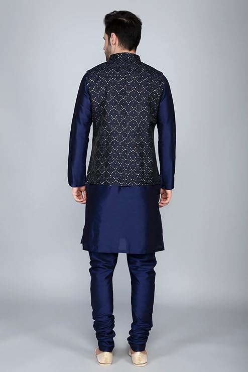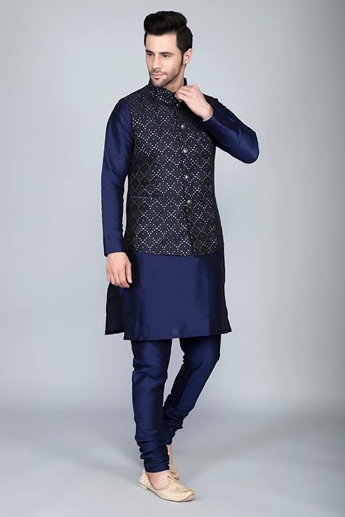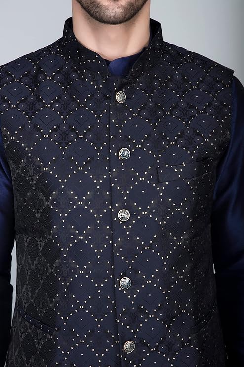 • Material: Silk Blend Kurta Set Jacquard Nehru Jacket