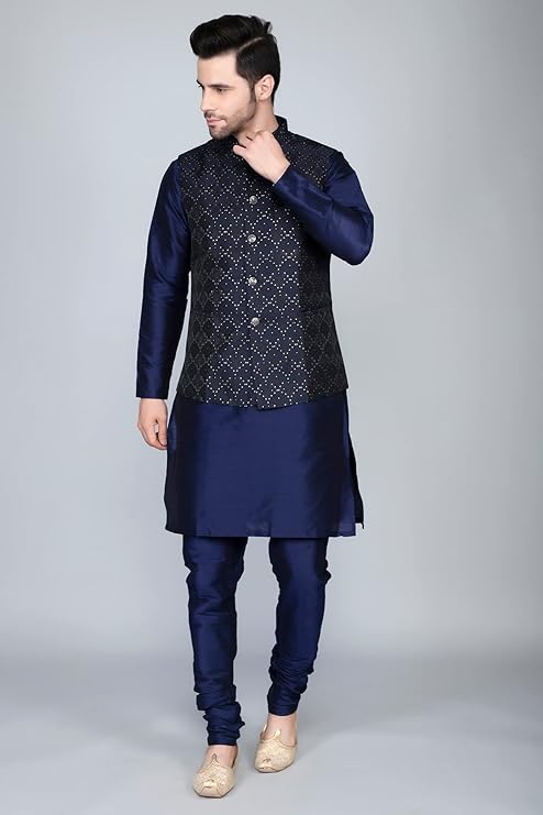 • Package Contents 1 Set Kurta Pyjama 1 Bundi Jacket