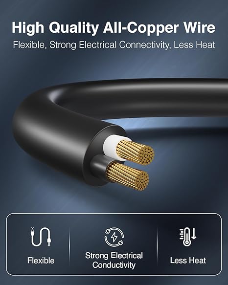 • ▶SAFE & RELIABLE - Made with high-quality materials, Overheat, Over Current, Over Voltage and Short Circuit Protection, it is Safe and Reliable to Use, Durable Fully molded design, resilient, maximum safety, durability and long life cord is made of FR PVC material, it has the advantages of environmental protection, waterproof, wear resistance, etc. After more than 10,000 bending tests, it has good Conductivity and stability and has long service.