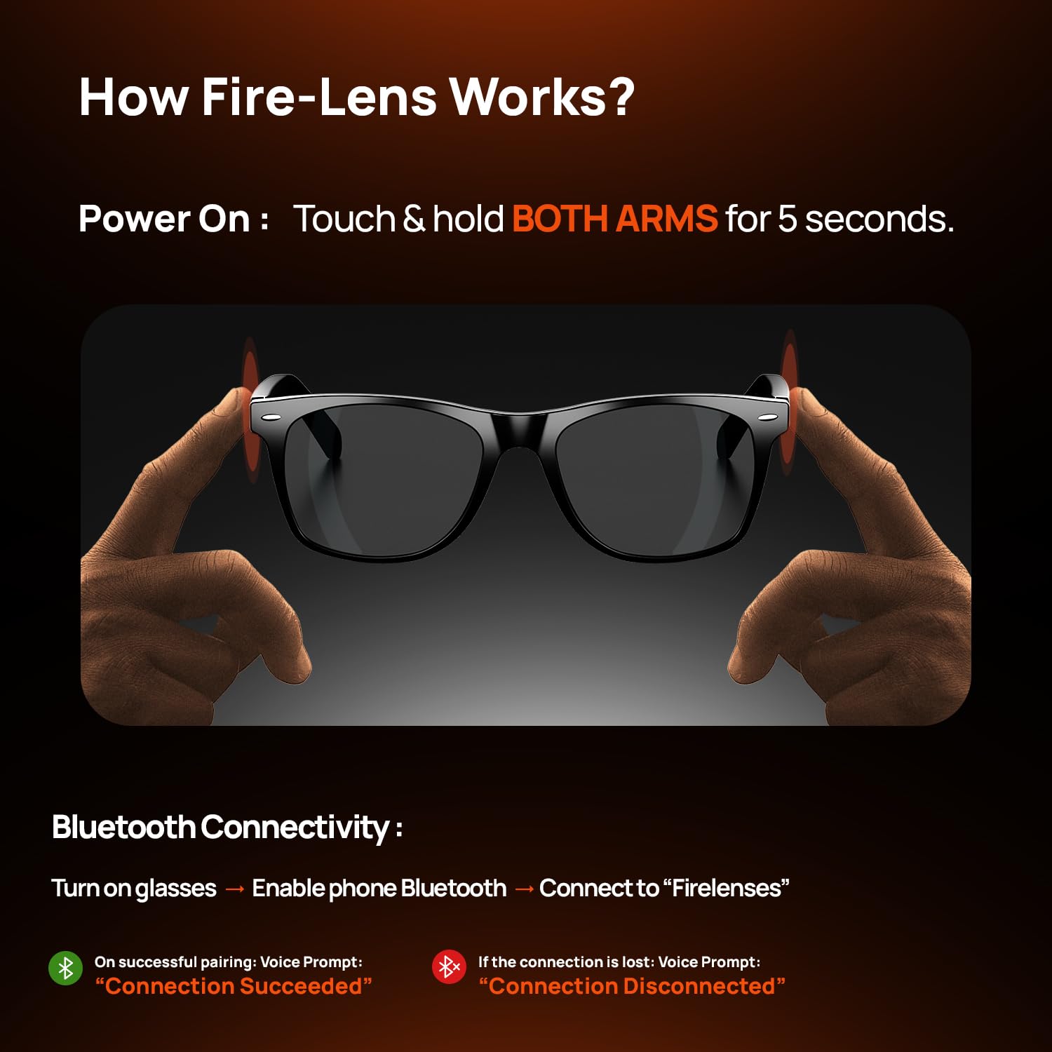 • Optical Lens Support + True Wireless Freedom - Customize your Fire-Lens Dune Smart Glasses with prescription lenses for all-day wear. Ditch bulky earbuds enjoy wireless freedom with a single fashionable accessory that delivers style, comfort, and smart functionality wherever you go.