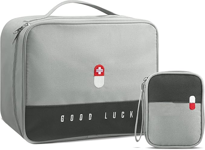 • PARTITIONED COMPARTMENTS: The travel medicine pouch is designed to store your medicines and necessities in an organized manner. This enables you to quickly find what you need. The medicine aid bag has a hand-embroidered medicine logo on the front so that it can be found quickly in case of an emergency, it also has a well-designed double zipper for smooth opening and closing, adding to ease of usage.