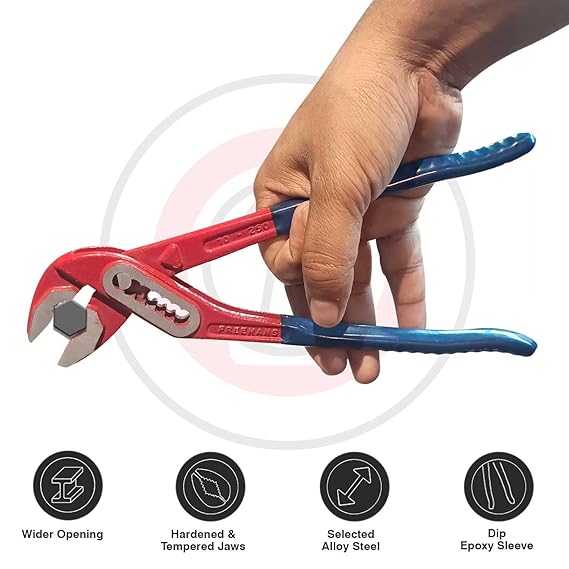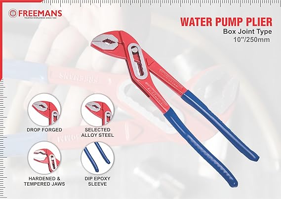FREEMANS WBJ10 250mm Box Joint Alloy Steel Water Pump Plier || Drop forged With Epoxy Dip Sleeve || Induction Hardened Jaws || Drop Forged - Red Blue