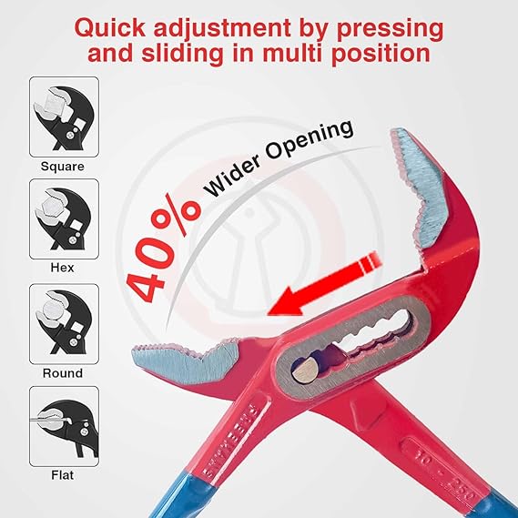 • Heavy Duty Construction: Crafted from premium alloy steel, these water pump pliers are built to withstand heavy-duty use and last for years.
