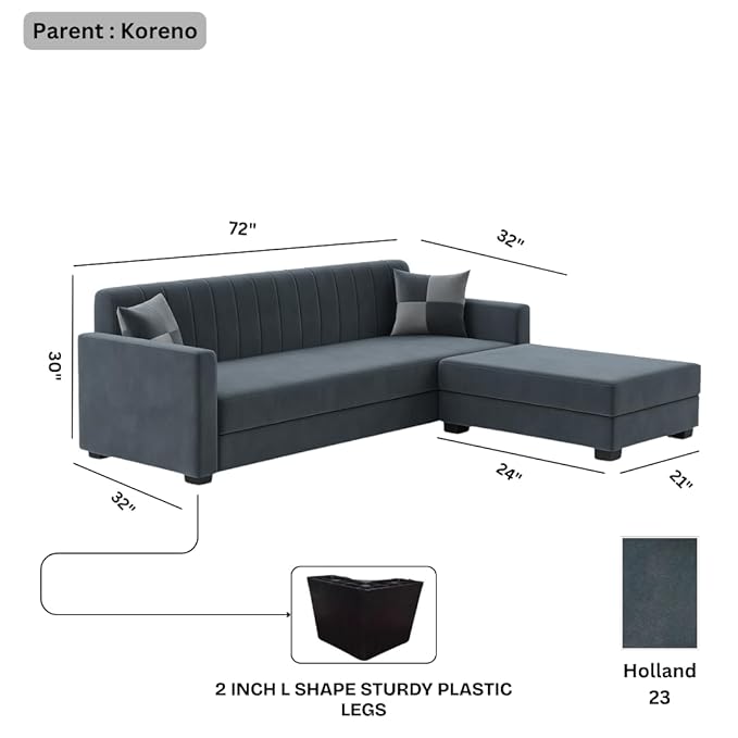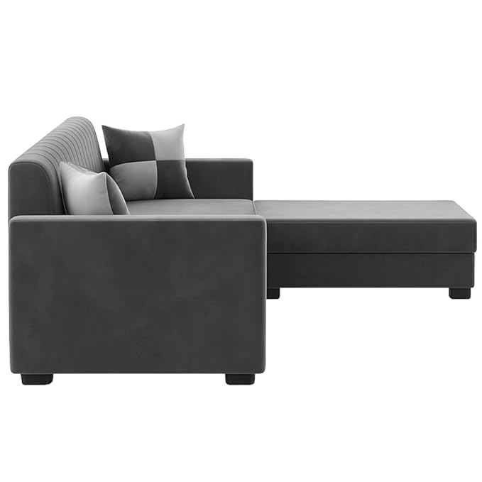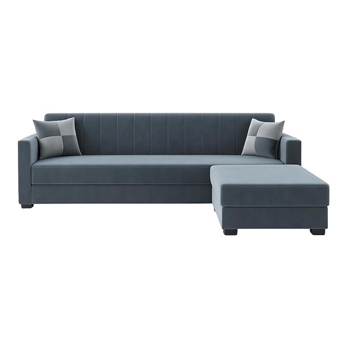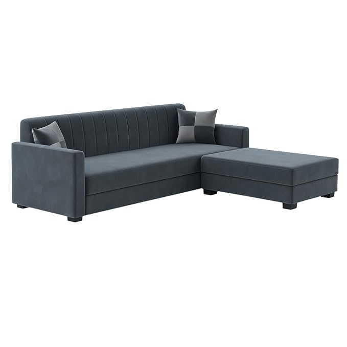 FURNY Korelon 3 Seater Fabric Modular Sofa Set with Ottoman (Dark Grey) Premium Velvet Fabric | Durable Comfort | Ideal for Living Room