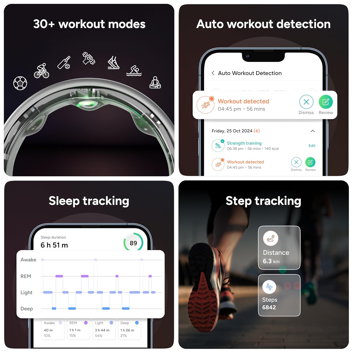 • ACTIVITY TRACKING, MADE SIMPLE: Track your daily activity with 30+ workout modes or let the ring auto-detect movement. Monitor heart rate zone, steps, pace, distance, and intensity in real time - plus get on-demand VO2 Max to assess your body’s oxygen efficiency. With Active Score and workout insights to measure your progress effortlessly. For deeper support, work with a coach to get personalized fitness and nutrition plans. Gabit is built for long-term health — helping you live healthier and longer.