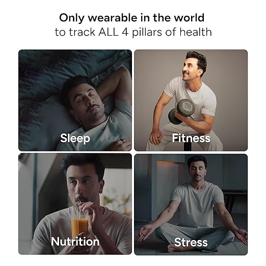 • GABIT SMART RING is the world’s first smart ring that tracks all 4 pillars of health – Sleep, Fitness, Nutrition, and Stress with no subscription fee and a powerful 7+ day battery life, is built with titanium for durability, is feather-light and water-resistant up to 50m. Gabit is the only wearable to track Calorie surplus/deficit, along with 30+ workout modes, Automatic Workout Detection, and women’s health features including period tracking. It also includes powerful AI features like PEP – your AI Health Coach, Voice-based Food Logging, and personalized health insights. Get real-time tracking of your key body markers – VO2 Max, Resting Heart Rate, Heart Rate Variability (HRV), Heart Rate.