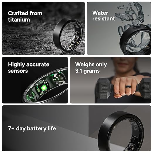 • SLEEK, STRONG & LONG-LASTING: Built to suit your lifestyle, the Gabit Smart Ring can go 7+ day on a single charge. Crafted from lightweight titanium, weighing just 3.1g, and water-resistant up to 50m, it’s built for nonstop wear - whether you're working, travelling, or working out.