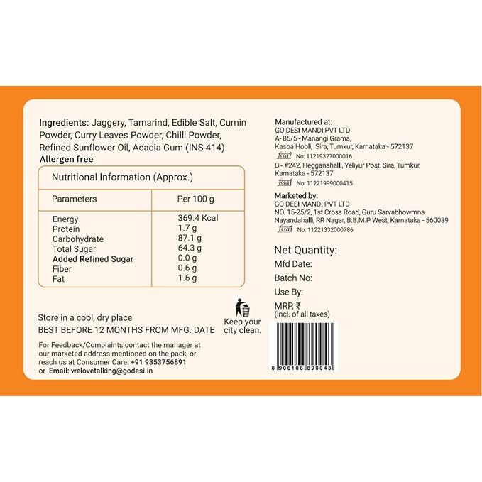 • 📝INGREDIENTS: Tangy tamarind, Sweet jaggery, Chatpata spices like jeera, curry leaves and chilli.