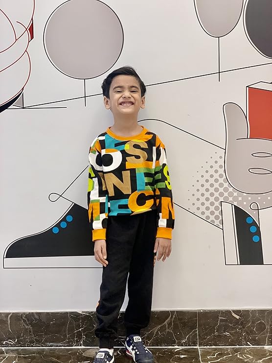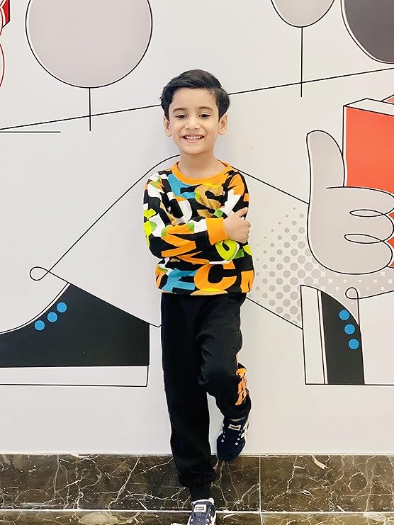 • Items Included : 1 Orange Letter Printed Sweatshirt, 1 Jogger Set | Boys Clothing Set