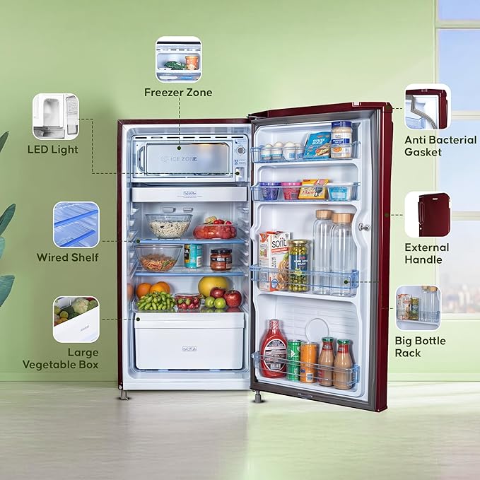 • Direct Cool Refrigerator: Stylish Single Door Refrigerator with Modern Red Mono finish. Enjoy powerful cooling that can last longer