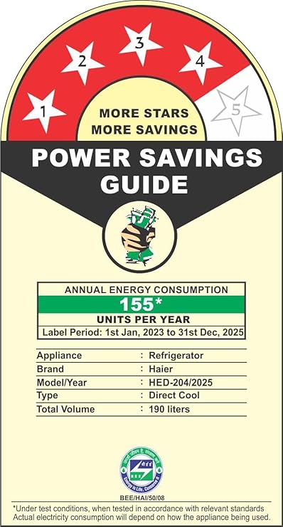 • Energy Rating : 4 Star Energy Efficiency | Annual Energy Consumption : 155 Kilowatt Hours Per Year
