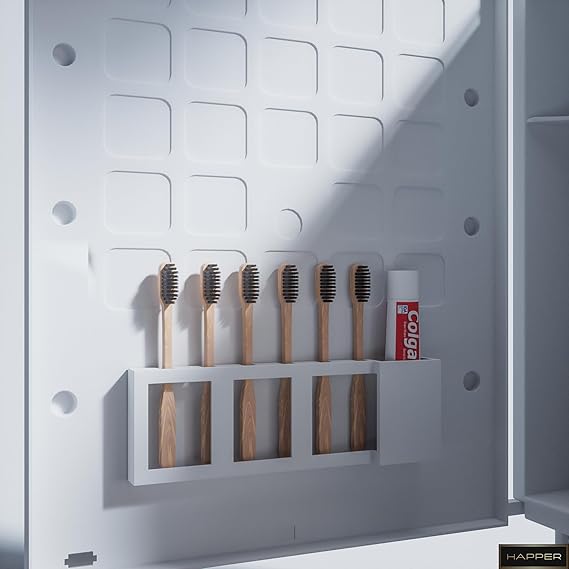 Happer Plastic Premium Multipurpose Wall Mounted Storage Cabinet with Mirror, Prime Look (White)