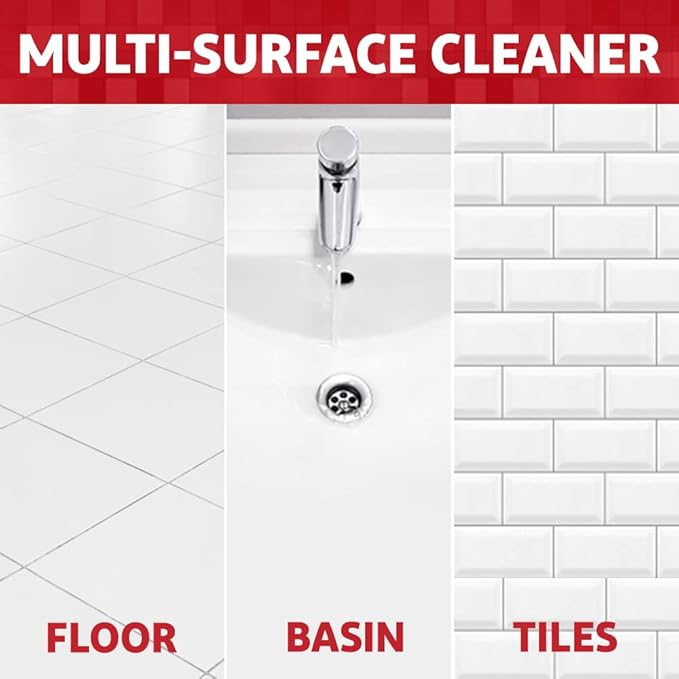 • Effective on tiles, floor, basin and most bathroom surfaces